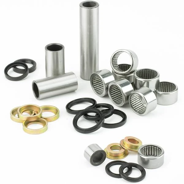 - Contains 4 needle bearing shafts, 8 needle bearings, 8 seals, 6 bushings, and 6 washers required to rebuild swing arm linkage to factory specifications.