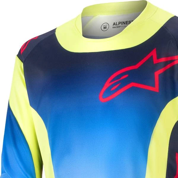 Alpinestars Kids Racer Hoen Jersey in Yellow Fluo Blue Night Navy – Alpinestars Motocross Enduro Jersey