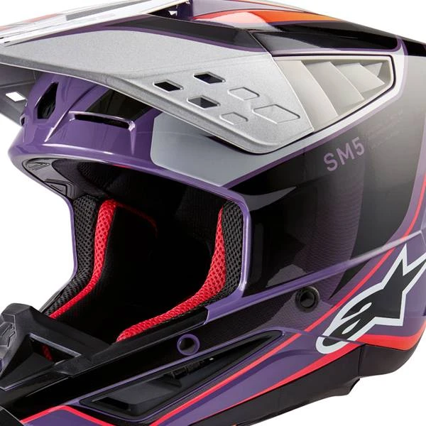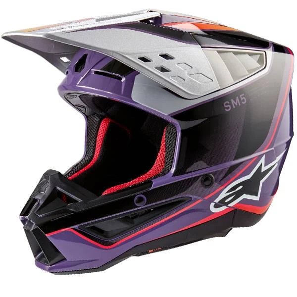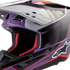 Alpinestars Supertech SM5 Sail Motocross Helmet in the Violet Black Silver Gloss design – Alpinestars Motocross Enduro Helmets