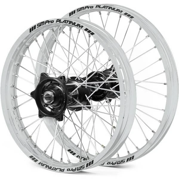 SM Pro Platinum Gas Gas Motocross Wheel Set with Black Hubs, Silver Rims, Silver Nipples & Silver Spokes